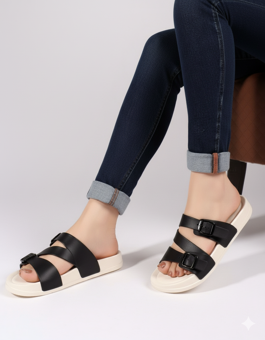 COMFORT TABLE DUAL-STRAP SANDALS WITH ADJUSTABLE BUCKLES AND CUSHIONED SOLE, DESIGNED FOR EVERYDAY WEAR AND EFFORTLESS STYLE