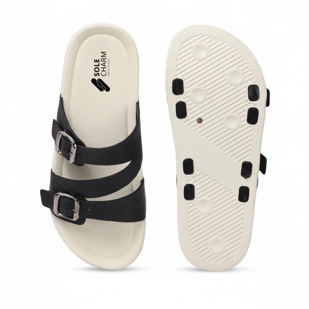 The Footwear trend that everyone will be wearing this season. No longer limited to single colors, we provide slides with high fashion having PVC sole and Rexin upper, which can be adorned with everything at an affordable price.